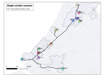 Hyperloop pre haalbaarheidsstudie voor de drukste goederencorridor van Nederland tussen Amsterdam en Rotterdam uitgevoerd door Hardt in samenwerking met Antea Group Nederland, @Balance - Advies, Projecten, Interim, Royal HaskoningDHV en SCenergy binnen het op Development Program.
